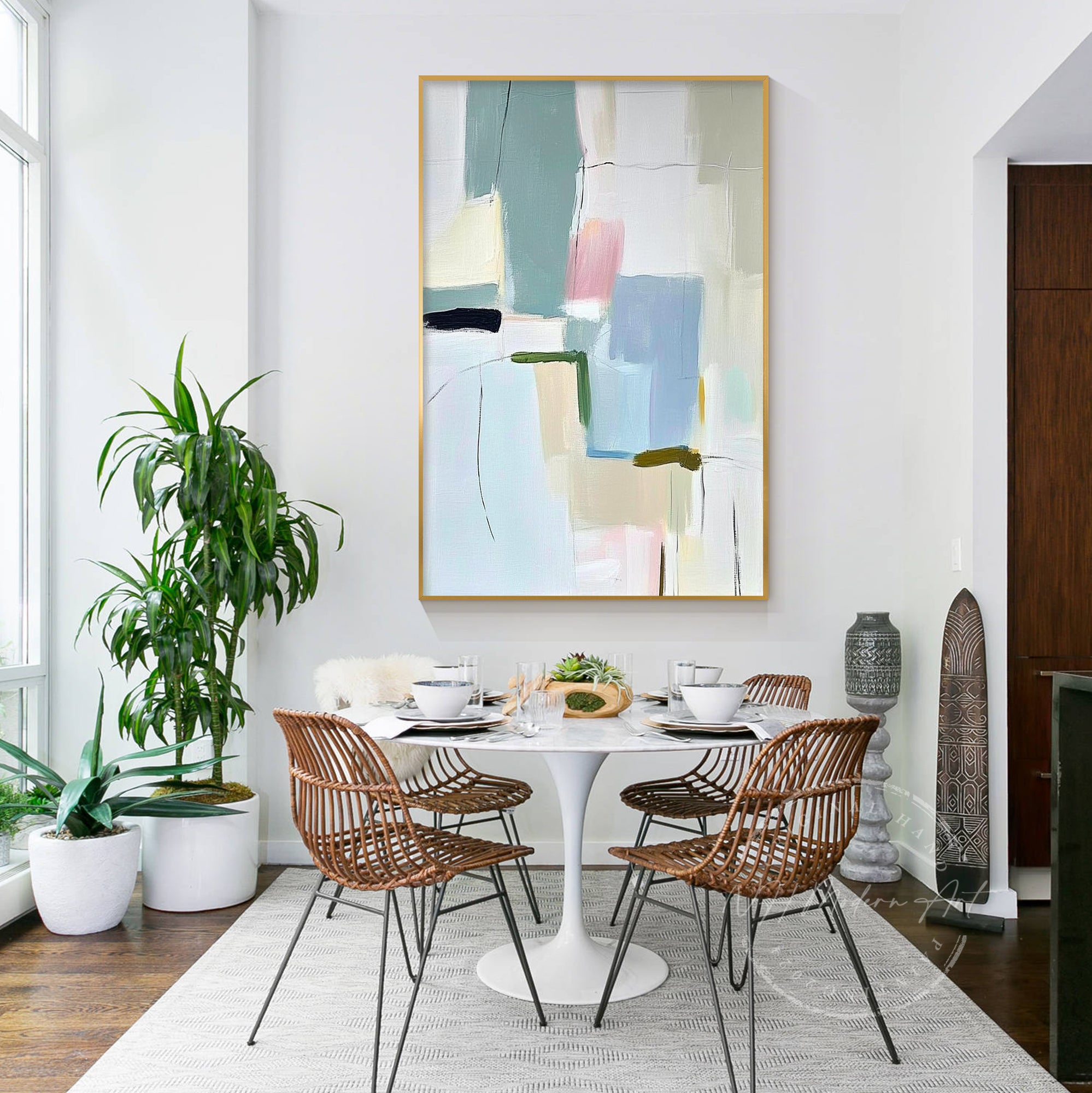 For a truly personalized touch, consider commissioning a custom piece from a local artist that reflects your colour scheme perfectly. Thanks to platforms like Instagram, discovering talented artists near you has never been easier!