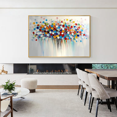 Hang your artwork at eye level — about 1.5 meters (60 inches) from the floor to the center of the piece. This standard height ensures your art is easily visible and well-proportioned within the room.