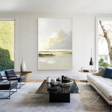 Large rooms or high ceilings need bold, oversized artwork to avoid looking underwhelming. One of the most common mistakes is hanging art that’s too small for the wall.