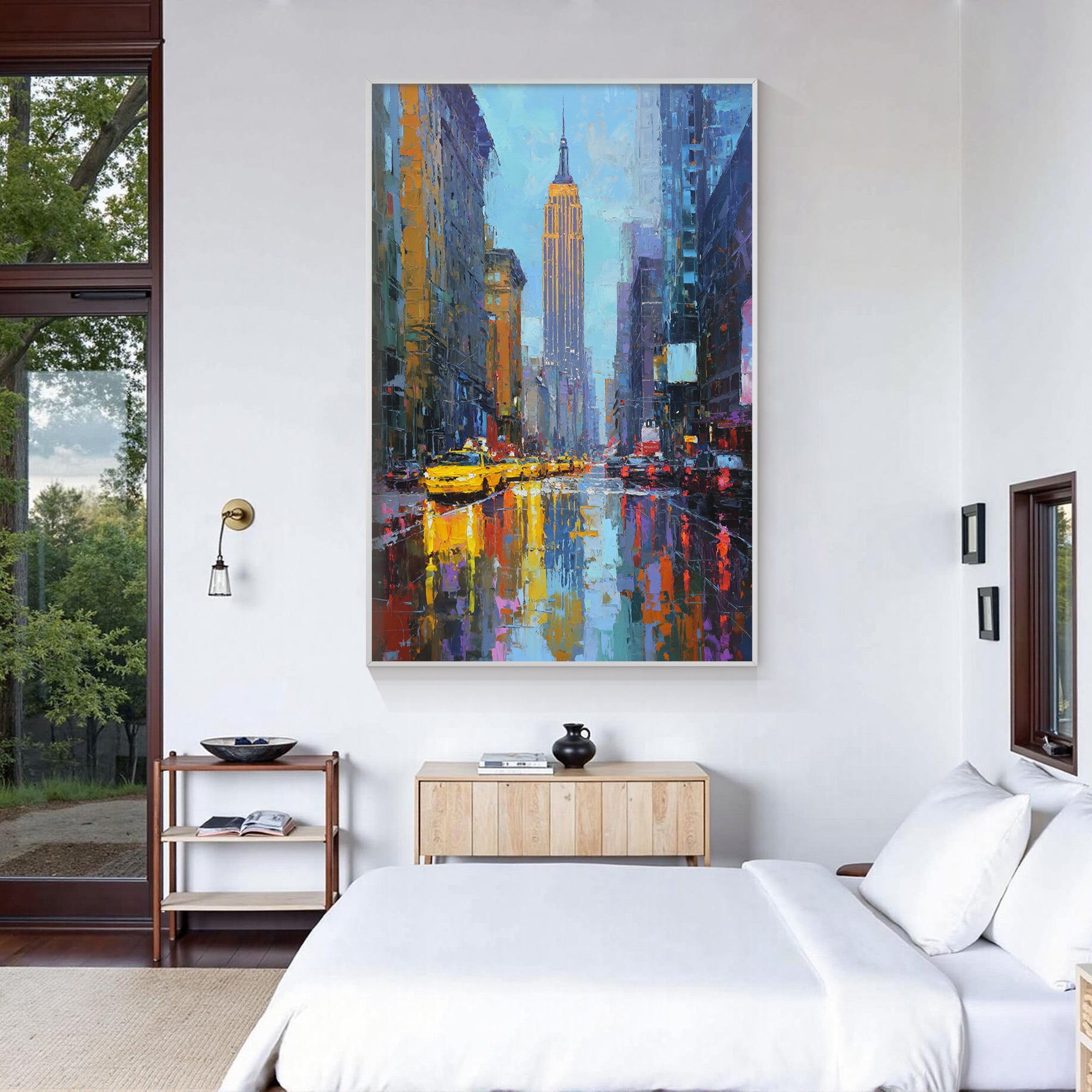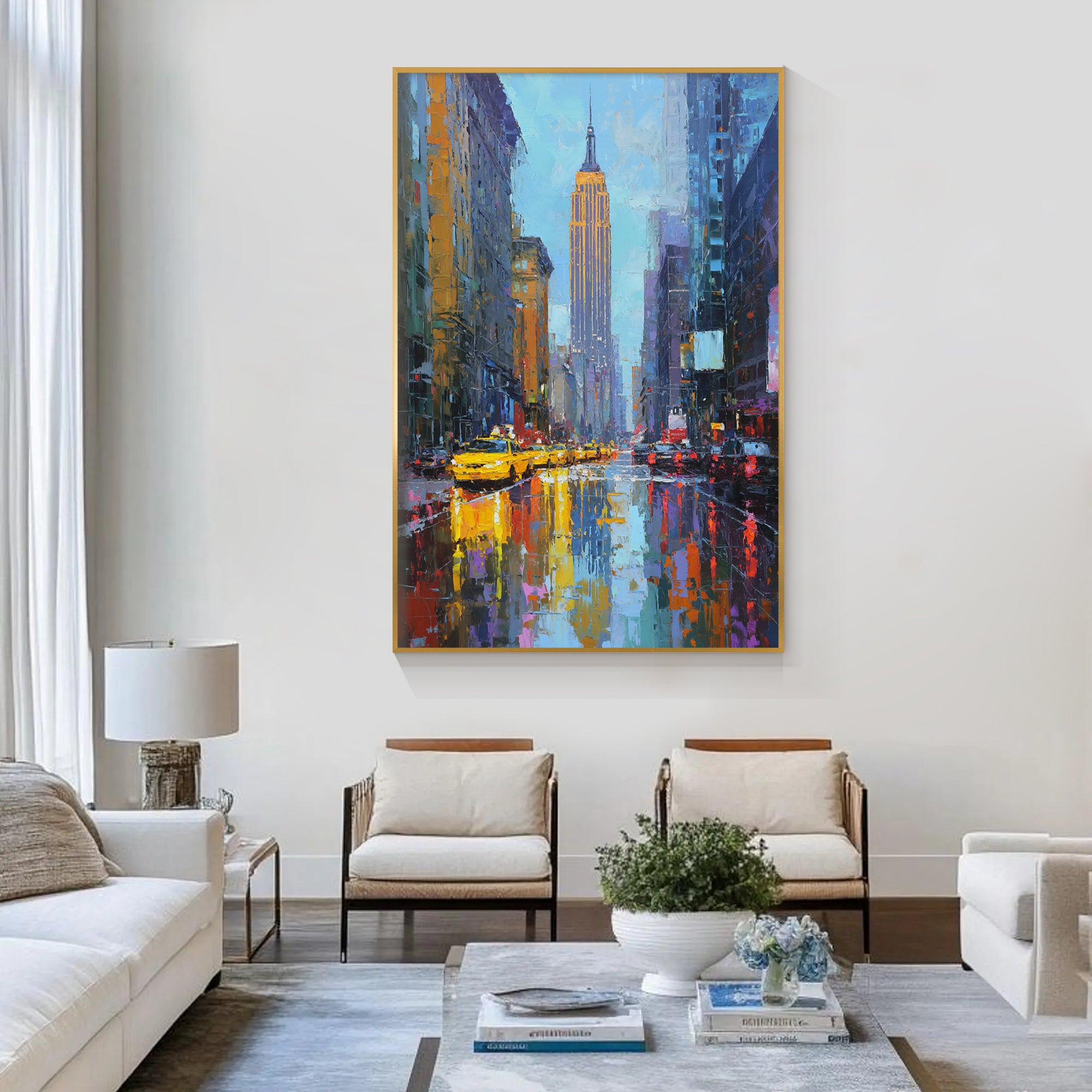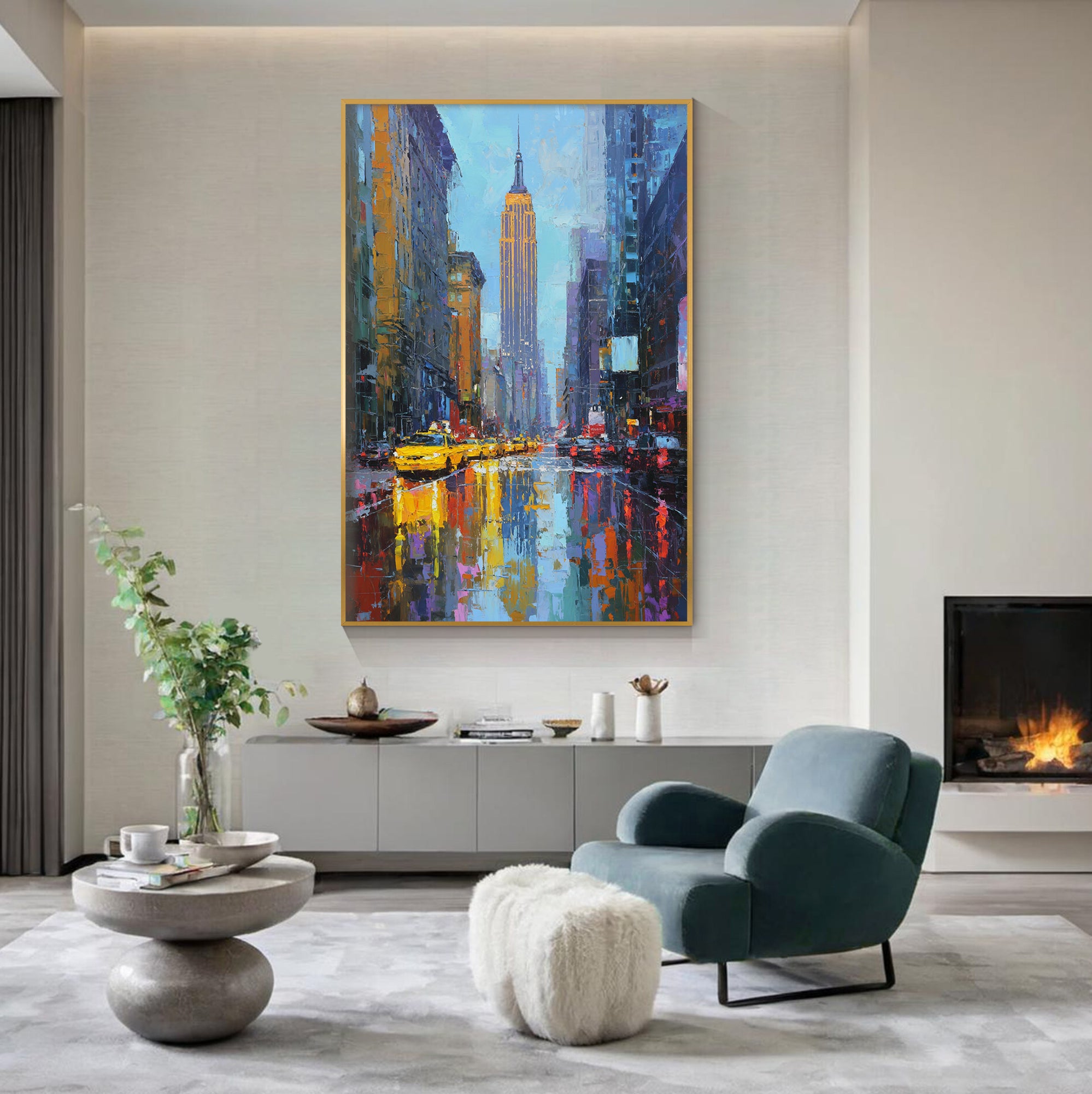 Large rooms or high ceilings need bold, oversized artwork to avoid looking underwhelming. One of the most common mistakes is hanging art that’s too small for the wall.