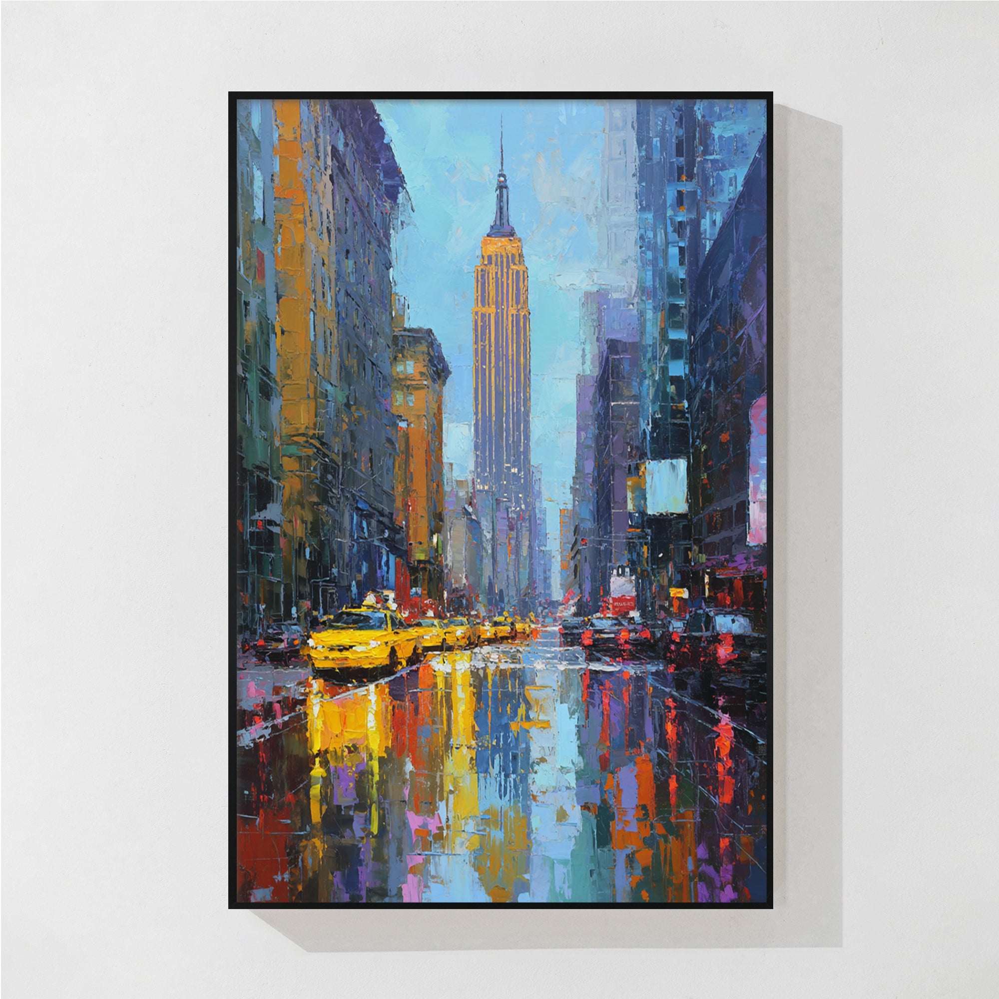 - Framed: painting is stretched and framed. There are 5 frame colors for you to choose from. We use premium quality metal to frame all our art work for the most perfect contemporary look.