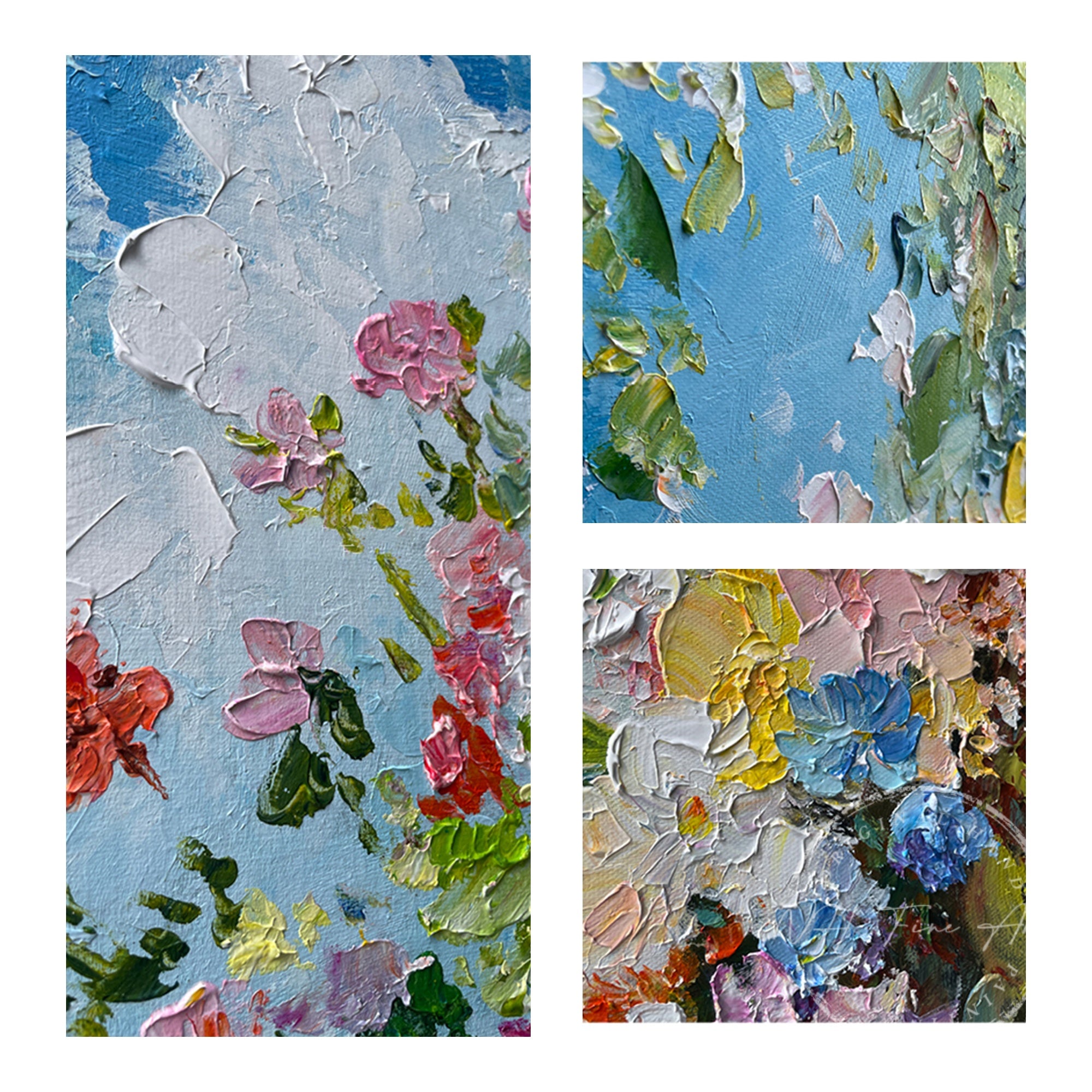 Flowers symbolize renewal, growth, and hope, inspiring calm and reflection. The lively colors and dynamic textures enhance both aesthetic appeal and emotional impact.