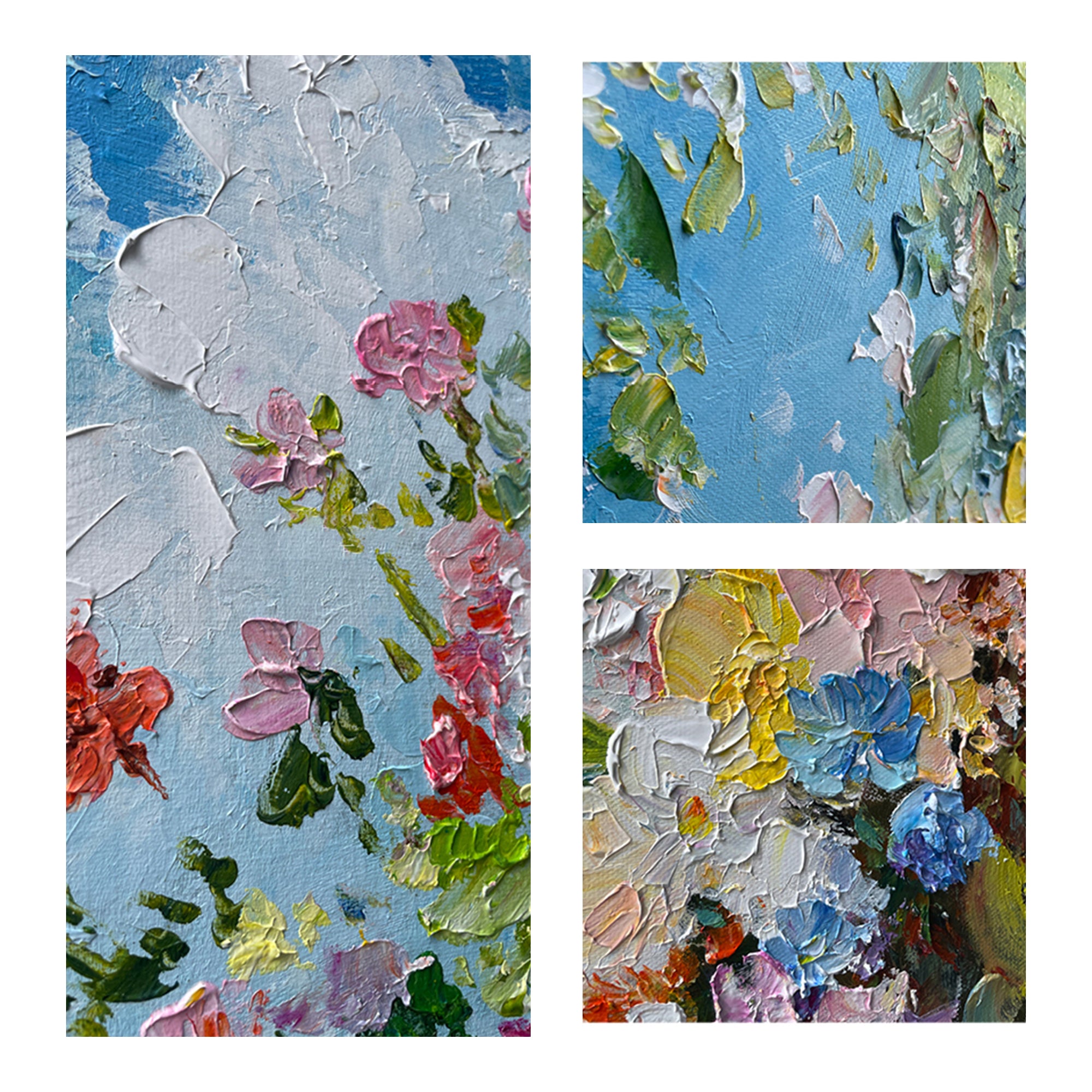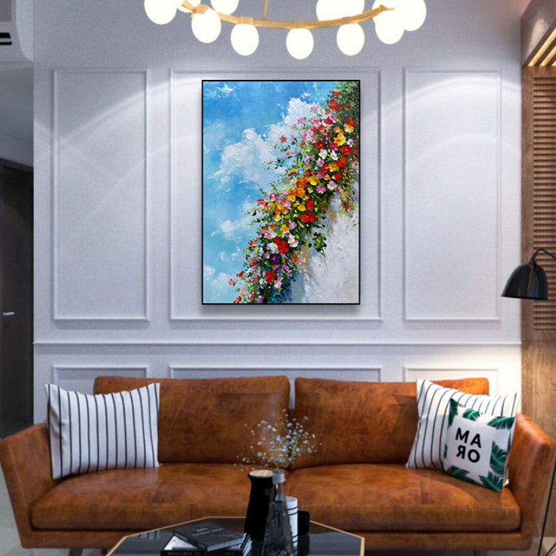 Our Flower Art Collection showcases multicolored blossoms, vivid hues, and rich textures, bringing the delicate beauty of flowers to life. Each piece features textured brushwork that adds depth and visual interest, creating a captivating focal point for any room.